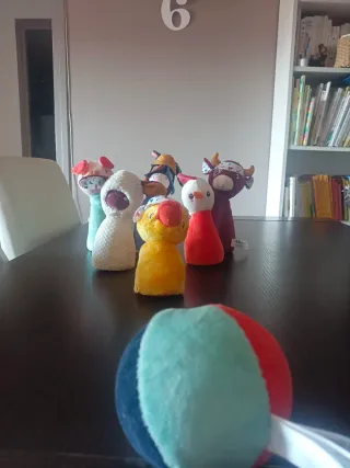 Divertido juego de bolos para niños con simpáticos animales de peluche. - Incluye 6 figuras de animales. - Figuras de peluche suave. - Diseño colorido y atractivo.
