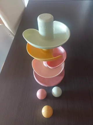 Divertida torre espiral de Little Dutch con sus tres bolas. - Torre de colores pastel. - Incluye tres bolas de diferentes colores: rosa, verde y naranja.