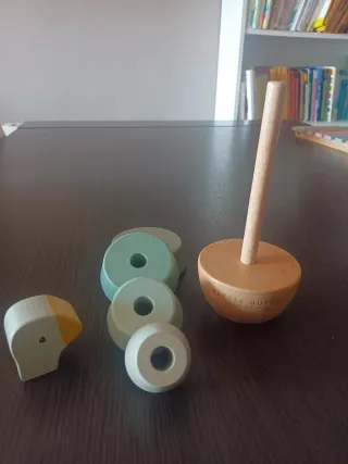 Torre apilable de madera de la marca Little Dutch. Un juguete clásico con un diseño moderno. - Piezas de madera pintadas en tonos pastel. - Base redondeada para un suave balanceo.