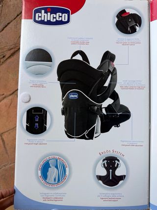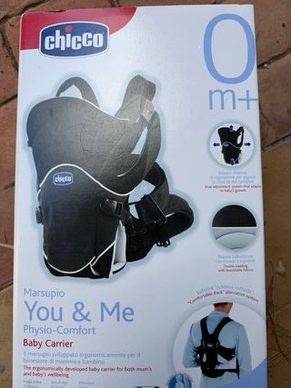 Marsupio ergonómico Chicco You & Me en color negro y blanco. Diseñado para el bienestar de mamá y bebé. - Sistema de doble ajuste para adaptarse al crecimiento del bebé. - Doble acolchado con tejidos transpirables. - Sistema Schiena comoda (Comfortable Back) para alivio de la espalda.