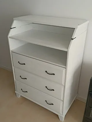 Mueble cajonera evolutiva de Ikea (Diktad), de madera maciza con la parte superior convertible en cambiador de pañales. Recien pintada y con guías de los cajones nuevas. Medidas: 78*112*48 cm (ancho, alto, fondo).