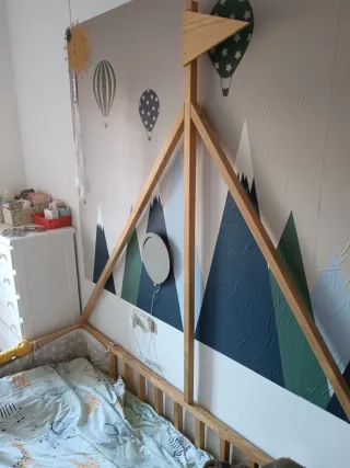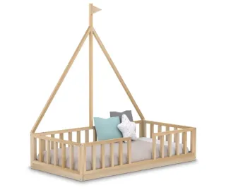 Cama infantil de madera con un diseño inspirado en la filosofía Montessori. Incluye somier y barandilla para mayor seguridad. - Estructura de madera natural. - Barandilla protectora. - Somier incluido.