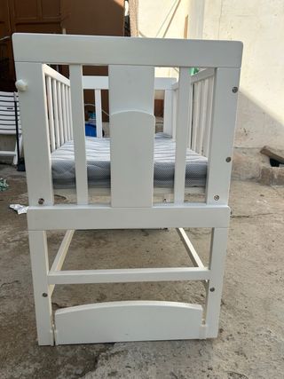 Cuna madera blanca + colchon, colcha ,chichonera.