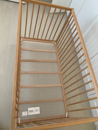 Una cuna cómoda y segura para tu hijo. Es de haya maciza, un material natural y resistente, duradero y renovable. puede ponerse a dos alturas. Utilizada pocos meses, esta nueva.