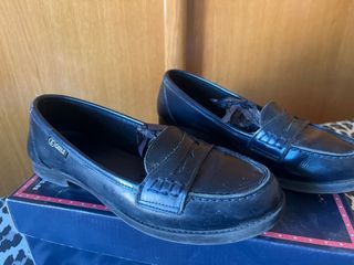 Zapatos colegiales de color azul marino, ideales para uniforme escolar. Se encuentran en muy buen estado. - Diseño tipo mocasín. - Detalle de logo GIRLS en el lateral.