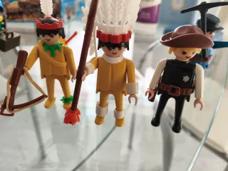 Lote de figuras Playmobil de temática western. - Incluye figuras de indios y un sheriff. - Accesorios como arcos, lanzas y picos.