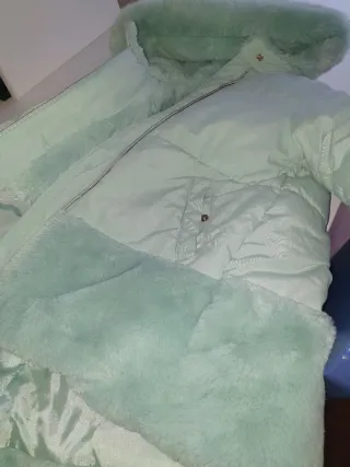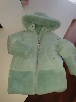 Abrigo infantil de color verde menta, ideal para mantener a los más pequeños abrigados. - Capucha con detalle de pelo. - Puños y bajo con acabado de pelo. - Cierre de cremallera.