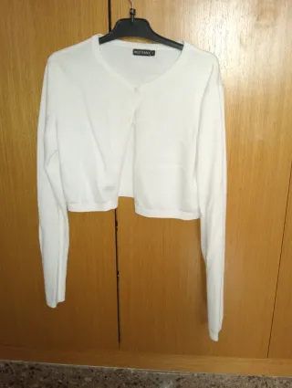 Torerita blanca para niña de 12 años. Es una prenda de manga larga y corte cropped. - Cierre de botones. - Cuello redondo.