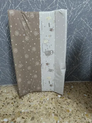Cambiador para bebé con un divertido estampado de simpáticos personajes. - Diseño con varios niveles de estampado. - Parte superior con estrellas blancas. - Base con rayas y estrellas.