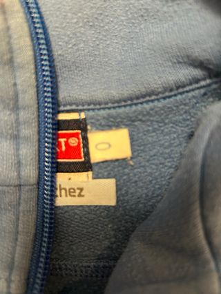 Chaqueta azul de uniforme del colegio Entrenaranjos. Talla 0, tiene un pequeño enganchón. - Cierre de cremallera. - Logo del colegio bordado en el pecho.