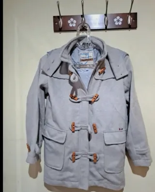 Trenca de la marca Trasluz en color gris, ideal para niños. A penas sin uso. Impecable - Cierre con botones de madera. - Bolsillos delanteros. - Capucha que puede quitarse - Puños ajustables.