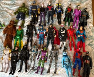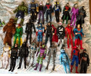 Colección variada de figuras de acción de superhéroes. - Figuras de personajes icónicos de Marvel y DC Comics. - Diseños detallados y colores vibrantes. - Ideal para coleccionistas y aficionados.