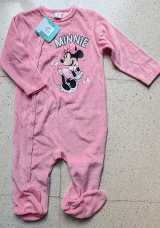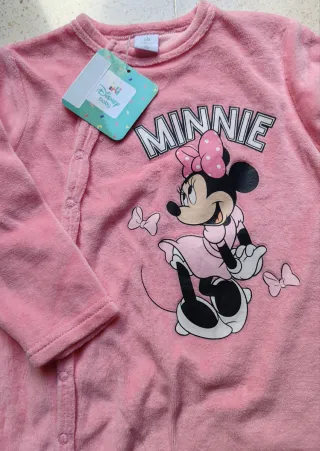 Pijama de bebé de Minnie Mouse en color rosa, talla 24 meses. Sin estrenar. - Tela de terciopelo - Diseño con Minnie Mouse. - Cierre de botones a presión. - Pies incorporados.