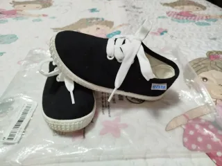 Zapatillas de lona negras. - Talla 26. - Cierre con cordones blancos. - Suela blanca.