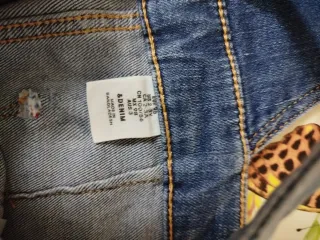 Lote de cuatro pantalones vaqueros largos para niña. - Diseño con mariposas en uno de ellos. - Detalle de texto Barbie en otro. - Dos pantalones con rotos en las rodillas.