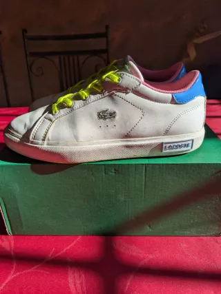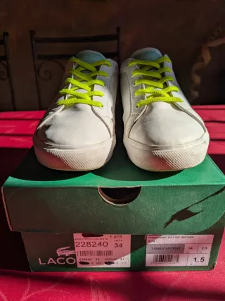 Zapatillas deportivas Lacoste para niña en color blanco con cordones llamativos en color verde lima. Perfectas para el día a día. - Modelo: POWERCOURT 1232 SUC - Talla: 34 - Color: Blanco/Verde Lima