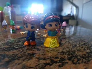 Figuras de Blancanieves y los 7 enanitos de Piny Pon. ¡Perfectas para coleccionar! - Blancanieves con su vestido amarillo y azul. - Un enanito con gorro morado. - Un enanito con gorro verde. - Figuras de otros enanitos. - Ideal para fans de Blancanieves.