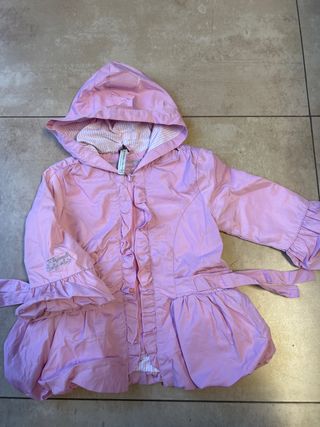 Chaqueta entretiempo de la marca Mayoral en talla 9 meses. Preciosa chaqueta con volantes y cinturón. Forro interior.