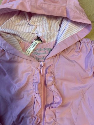 Chaqueta acolchada de color rosa de la marca Mango. como nueva, sin rozaduras ni desgastes. - Talla 9-12 meses. - Capucha. - Cierre de cremallera. - Bolsillos laterales con cremallera.