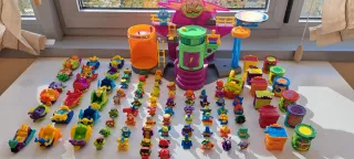 Se vende lote de juguetes Superthings que incluye el laboratorio. - Incluye figuras de Superthings: 60 - El laboratorio es el set principal de juego. - 18 coches +1 más grande - 6 cápsulas - 6 casas