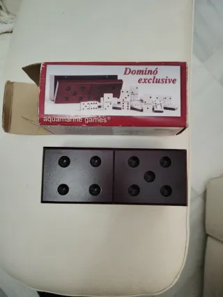 Juego de dominó Dominó exclusivo de la marca aquamarine games. Sin usar. - Piezas de madera oscura con puntos. - Caja original incluida.