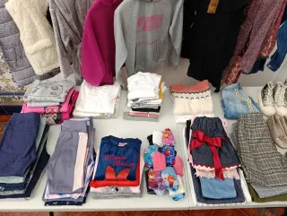 Lote de ropa variada para niña de 8 a 10 años. - Incluye pantalones, leggings, camisetas y sudaderas. - Diseños infantiles y coloridos. - Variedad de prendas para diferentes ocasiones.
