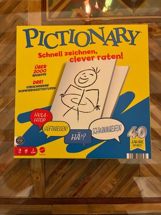 Juego de mesa Pictionary, ideal para dibujar y adivinar. - Más de 2000 conceptos. - Tres niveles de dificultad. - Para 2 equipos. - Edad recomendada: 8+ años. - Duración: 30 minutos.