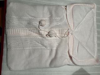 Saco de paseo y cuco en color rosa, con un bonito diseño tejido. - Tejido suave y agradable. - Cierre con pompones. - Ideal para carritos y cucos.