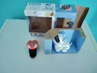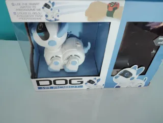 Perro robot interactivo, modelo VR DOG. - Diseñado para ser programado con un reloj inteligente. - Color blanco con detalles en azul.