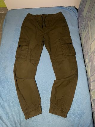 Marca: Denim Co. (Primark) 🏬 • Estilo: Pantalón Cargo / Jogger 🥾 • Corte: Slim Fit (Ajustado pero cómodo) ✨ • Color: Verde militar / Kaki ,🌿