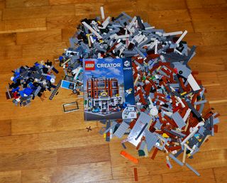 Set de construcción LEGO Creator Expert de la Gasolinera No incluye la caja. Todas las piezas y el libro de instrucciones de montaje son originales, añado de regalo una motorista policía de las revistas de Lego. Tiene en total 7 minifiguras Mide 25,5 cm x 25, 5 cm x 32 cm y tiene 2.569 piezas. Lo entrego desmontado.