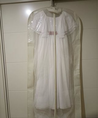 Vestido de comunión de la marca Coconut. Incluye funda protectora. - Marca: Coconut - Incluye funda protectora - 110 cm alto - 33 cm ancho cintura - Incluye dos cintas: original crema con brillo y otra de raso rosa