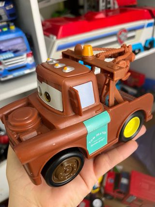 Camión de juguete del personaje Mate de la película Cars. Este camión tiene detalles inspirados en la película. - Personaje: Mate. - Película: Cars. - Incluye sonido.
