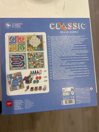 Set de juegos de mesa clásicos de Apli Kids, ideal para niños. Incluye varios tableros y piezas para horas de diversión. - Diseños coloridos y atractivos. - Fomenta el desarrollo de habilidades. - Incluye tablero de oca y otros juegos.