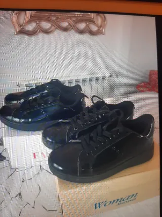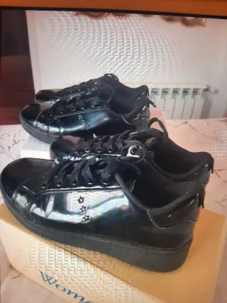 Zapatos deportivos negros para niña, con acabado brillante. número 34 - Cierre con cordones. - Diseño liso y elegante. - Suela de goma.