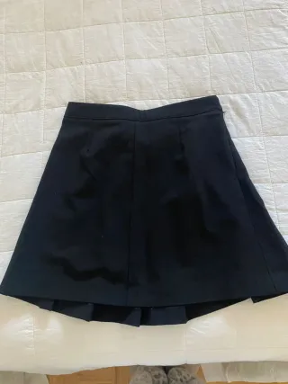 Falda corta negra de Zara con cinturón. - Talla 11. - Diseño plisado. - Cinturón negro con hebilla metálica.