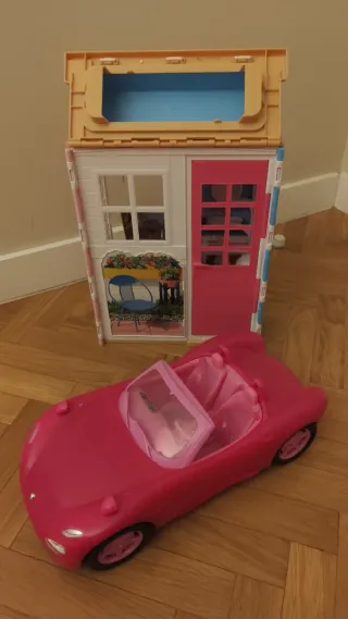 Se vende casa de Barbie y regalo coche deportivo rosa.