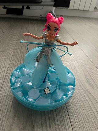 Muñeca voladora con base de carga. - Diseño de hada con alas. - Base con patrón de hielo. - Incluye cable de carga USB.