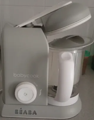 Robot de cocina Babycook de la marca Béaba en color gris. Ideal para preparar comida para bebés. - Diseño compacto. - Panel de control intuitivo.