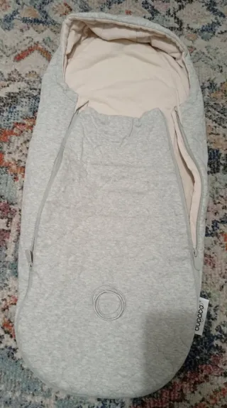 Saco universal Bugaboo en color gris, ideal para mantener al bebé abrigado. - Exterior de tejido suave. - Interior forrado. - Cremallera lateral para fácil acceso. - Logo de la marca en relieve.