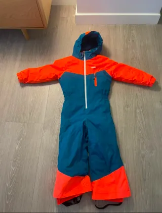 Mono de nieve para niños, ideal para disfrutar del invierno. - Diseño bicolor en azul y naranja. - Capucha integrada. - Cremallera frontal. - Puños y bajos ajustados.