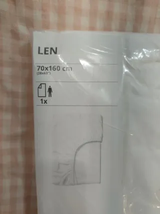 Sábana bajera blanca de la marca IKEA, modelo LEN. Es nueva y viene en su embalaje original. - Medidas: 70x160 cm. - Color: Blanco.