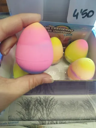 Pack de huevos mágicos de unicornio que crecen al eclosionar. Contiene 6 unidades. - Diseño de unicornio. - Colores surtidos (amarillo y rosa). - Divertido juguete para experimentar.