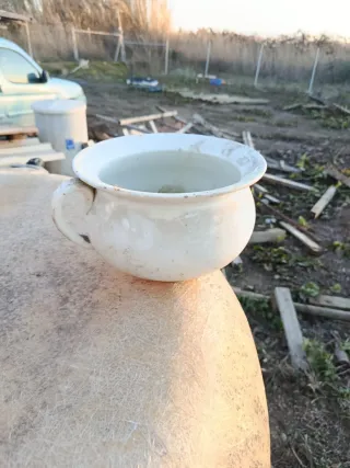 Orinal antiguo de cerámica con asa. Un objeto decorativo con historia. - Material: Cerámica. - Color: Blanco.