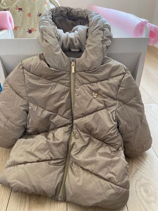 Abrigo acolchado de la marca Mayoral, perfecto para el frío. - Color beige metalizado. - Diseño acolchado con líneas diagonales. - Capucha integrada. - Cierre de cremallera. - Detalle de corazón en el pecho.