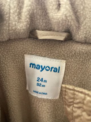 Parka o chaqueta infantil de la marca Mayoral, talla 6 años. Diseño tricolor en rojo, blanco y azul marino. - Cierre de cremallera. - Capucha. - Mangas largas.