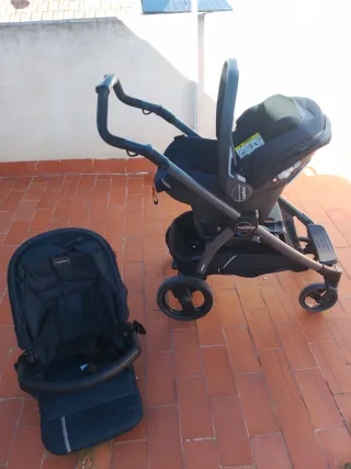 Cochecito y silla de paseo en buen estado. Ideal para el transporte de bebés y niños pequeños. el carricoche solo lo usé una semana está en excelente estado la sillita si la usé más - Estructura resistente y ligera. - Capazo amplio y cómodo. - Silla de paseo reversible. - Ruedas todoterreno. - Incluye bolso. - Color gris.