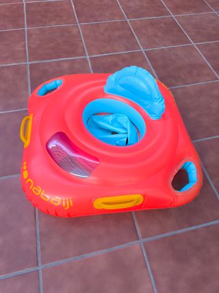 Flotador infantil Nadaiji, ideal para que el bebé disfrute del agua con seguridad. - Flotador circular con asiento integrado. - Color rojo y azul. - Diseño ligero y fácil de inflar. - Perfecto estado.