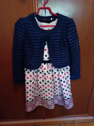 Conjunto niña chaqueta y vestido lunares