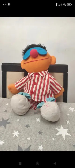 Muñeco Epi dormilón😴 No tiene el sistema de sonido, no funcionaba y se le quitó, lo ideal sería rellenarlo con algodón o algún material similar para que cogiera más cuerpo😊 Mide unos 45cm aprox📏 Tiene muchos años y signos del paso del tiempo, pero a rasgos generales se puede seguir usando👍🏻